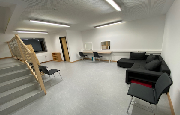 Ebenfalls ist eine Künstlergarderobe (nebst eigener Toilette) mit direktem Aufgang zur Bühne vorhanden.