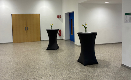 Je nach Event und Bedarf bieten wir unser Catering im Foyer oder im Kultursaal (bis max. 150 Personen) an. Wir sind professionell mit Getränkekühlschränken, Gefrierschrank, Spülmaschine und Herd ausgestattet.