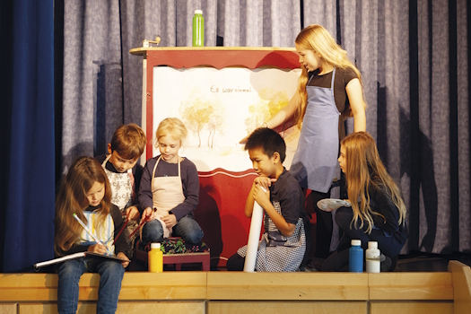 Kinder-Erzählkino auf der Bühne![]() Ferienprogramm Unter der Leitung von Ines Maria Schmiedt und Laurie Schmiedt gestalten die Kinder zusammen ihre eigene Geschichte - lebendig inszeniert mit bewegten Bildern im KreaShibai. Ob mutig, leise, verträumt oder voller Tatendrang - in diesem Kurs bringen die Kinder ihre eigene Kreativität und Bilderwelt hervor und entfalten verschiedene Talente: Fantasieren, Malen, Zeichnen, Sprechen, Singen bis hin zu - wer möchte - Schauspielen. Dabei werden viele soziale Aspekte wie Respekt und Anerkennung für verschiedene Ideen und Ausdrucksformen angesprochen. Zugleich genießen sie auch die Freude am gemeinsamen Gestalten und Darstellen. Konzept: Die Kinder zeichnen ihre Fantasiewelt auf eine lange Papierbahn und entwickeln eine Geschichte. Dabei illustrieren sie ihre erarbeiteten Szenen mit bewegten Bildern, die auf der Rolle zum Leben erwachen - inspiriert vom Kamishibai, japanisch: "Papiertheater". Ob als Geschichtenerfinderin oder als Statist, Erzähler oder Schauspielerin - die Kinder finden ihre Rolle und gestalten sie, wie sie ihnen gefällt. Sie dürfen sich auf Obst, Getränke und am Aufführungstag außerdem auf selbstgemachte Pizza freuen. Zeit: Mo. bis Do. 09.00 bis 13.00 Uhr, Fr. 09.00 bis 15.00 Uhr Fr. 14.00 Uhr Aufführung Kosten: 150,00 € Teilnehmer: 5 bis 12 Kinder von 6 bis 12 Jahren Leitung: Ines Maria Schmiedt und Laurie Schmiedt Anmeldung: www.kusch.cc oder E-Mail oder Tel. 08141/8880032 Mehr unter: ines-schmiedt.de und laurieschmiedt.de |